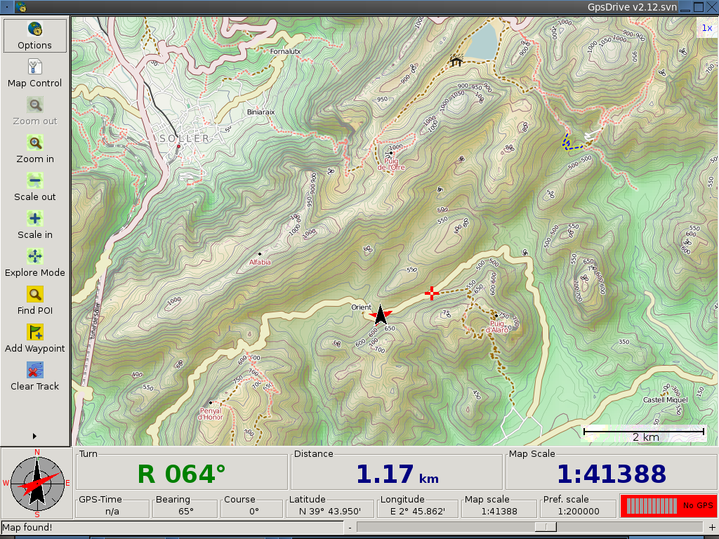 GpsDrive is a car (bike, ship, plane, foot) navigation system. GpsDrive displays your position provided from a GPS on a zoomable map. The map file is auto-selected depending on your position and preferred map scale. All GPS receivers which support the NMEA protocol should be usable, as well as many USB GPSs using a binary protocol known to the Gpsd GPS daemon and multiplexer.