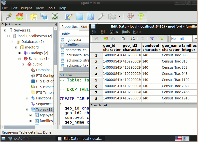 Database administration is available via pgAdmin, phpPgAdmin, among others. Importing and exporting data is provided by various converter tools (shp2pgsql, pgsql2shp, ogr2ogr, dxf2postgis). And there are numerous desktop and browser GIS clients for viewing PostGIS data.