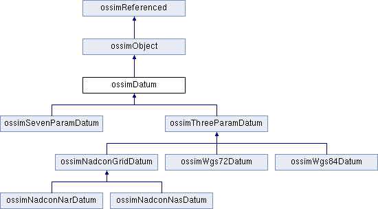 Implemented in ossimSevenParamDatum, ossimThreeParamDatum, ossimWgs84Datum, ossimWgs72Datum, ossimNadconNasDatum, and ossimNadconNarDatum.