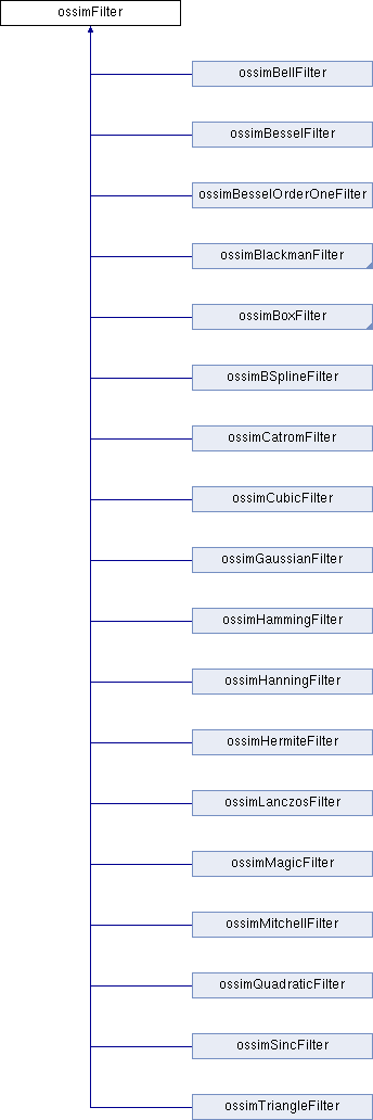 Implemented in ossimTriangleFilter, ossimQuadraticFilter, ossimMitchellFilter, ossimMagicFilter, ossimLanczosFilter, ossimHermiteFilter, ossimHammingFilter, ossimHanningFilter, ossimGaussianFilter, ossimBSplineFilter, ossimCubicFilter, ossimCatromFilter, ossimBlackmanBesselFilter, ossimBlackmanSincFilter, ossimBlackmanFilter, ossimBesselFilter, ossimBesselOrderOneFilter, ossimNearestNeighborFilter, ossimBellFilter, ossimSincFilter, and ossimBoxFilter.