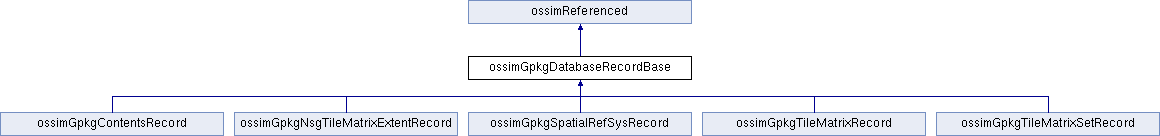 Implemented in ossimGpkgSpatialRefSysRecord, ossimGpkgContentsRecord, ossimGpkgNsgTileMatrixExtentRecord, ossimGpkgTileMatrixRecord, and ossimGpkgTileMatrixSetRecord.