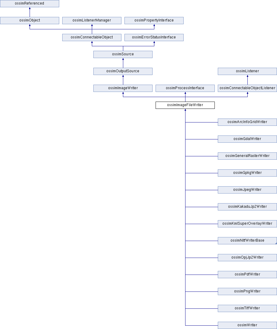 Implemented in ossimGpkgWriter, ossimPngWriter, ossimPdfWriter, ossimOpjJp2Writer, ossimWriter, ossimTiffWriter, ossimNitfWriter, ossimKakaduNitfWriter, ossimKakaduJp2Writer, ossimKmlSuperOverlayWriter, ossimJpegWriter, ossimGeneralRasterWriter, ossimNitf20Writer, ossimGdalWriter, and ossimArcInfoGridWriter.