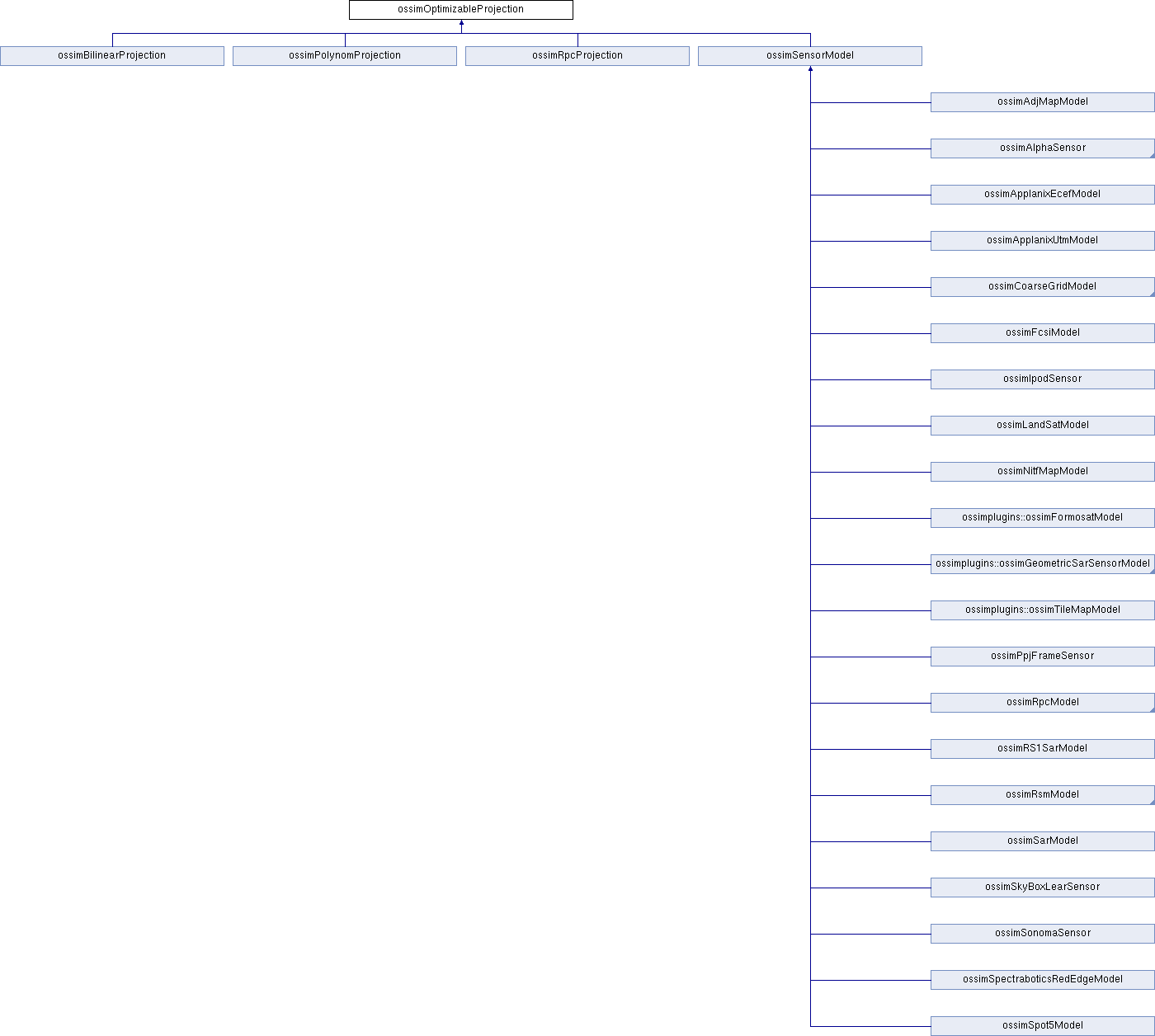 Implemented in ossimFcsiModel, ossimRpcModel, ossimplugins::ossimGeometricSarSensorModel, ossimSarModel, ossimRpcProjection, ossimLandSatModel, ossimAdjMapModel, ossimSonomaSensor, ossimplugins::ossimTileMapModel, ossimCoarseGridModel, ossimplugins::ossimFormosatModel, ossimSpot5Model, ossimRS1SarModel, ossimSkyBoxLearSensor, ossimApplanixEcefModel, ossimBilinearProjection, ossimIpodSensor, ossimSpectraboticsRedEdgeModel, ossimNitfMapModel, ossimRsmModel, ossimPolynomProjection, ossimApplanixUtmModel, ossimPpjFrameSensor, and ossimAlphaSensor.