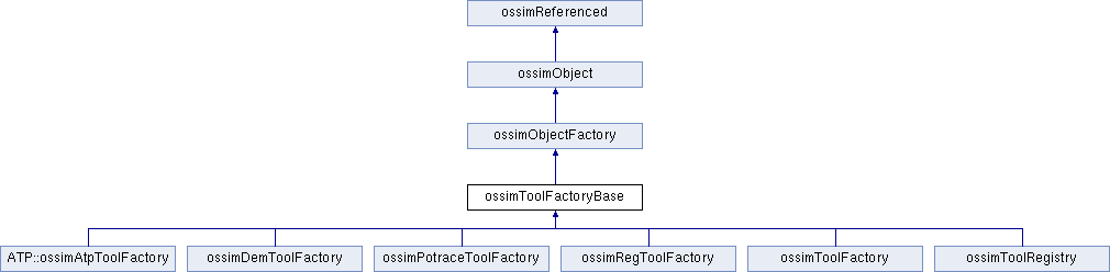 Implemented in ossimToolRegistry, ossimToolFactory, ATP::ossimAtpToolFactory, ossimDemToolFactory, ossimPotraceToolFactory, and ossimRegToolFactory.